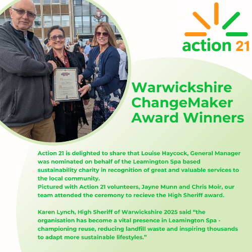 In 1996, as a follow up to the 1992 Rio Earth Summit, Warwick District Council launched a local plan of action called Agenda 21. Various groups were set up on themes such as energy, transport, allotments and food. A few years later, it was relaunched as Action 21 which became a stand-alone company and later on a charity.
